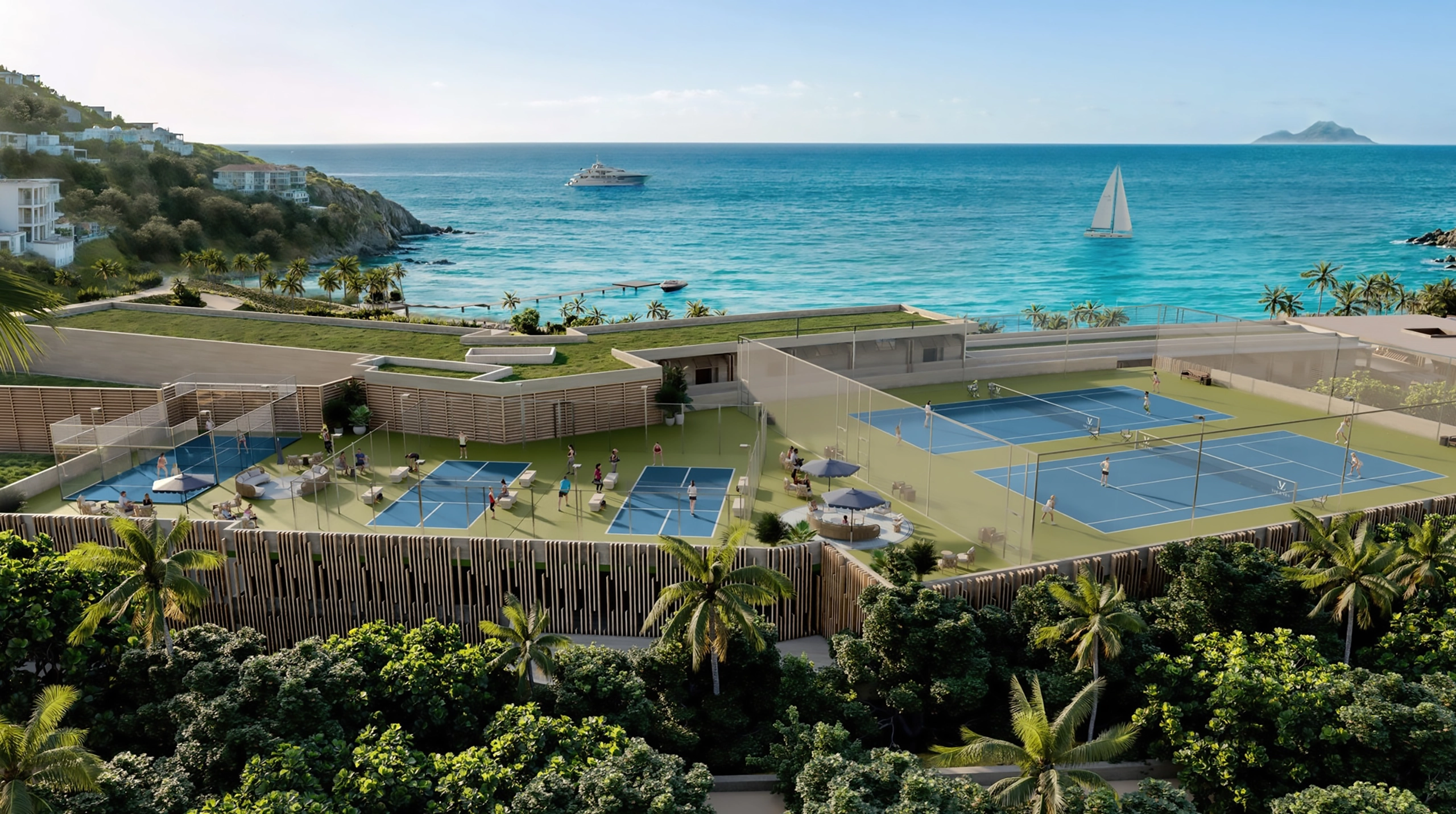 For those inspired by movement, rooftop tennis, padel, and pickleball courts rise above the shoreline, pairing active play with sweeping Caribbean views. A thoughtfully designed fitness centre featuring both indoor and outdoor guided classes creates space to restore energy, strength, and balance, surrounded by the beauty of sea and sky.
